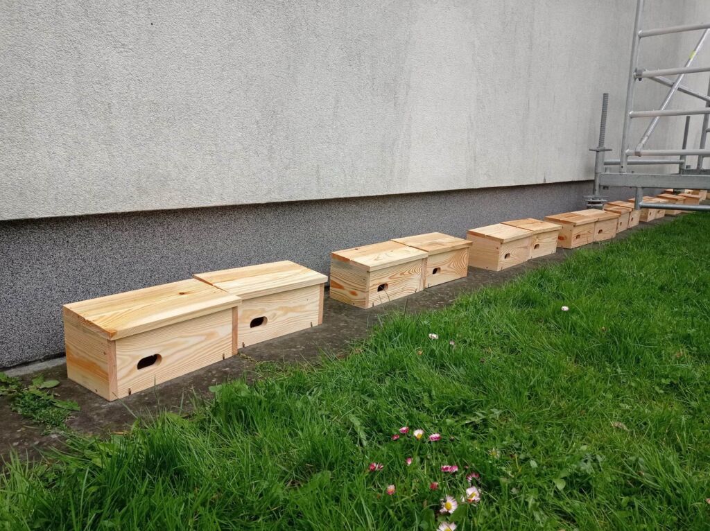 Na ścianie szkoły zawisły budki lęgowe dla jerzyków. Z pieniędzy zebranych podczas jesiennego kiermaszu zakupiliśmy 20 domków, śruby oraz deski potrzebne do instalacji. Budki bezpiecznie zostały zawieszone przez ekipę fachowców. Pozostaje teraz czekać na pierwszych lokatorów…