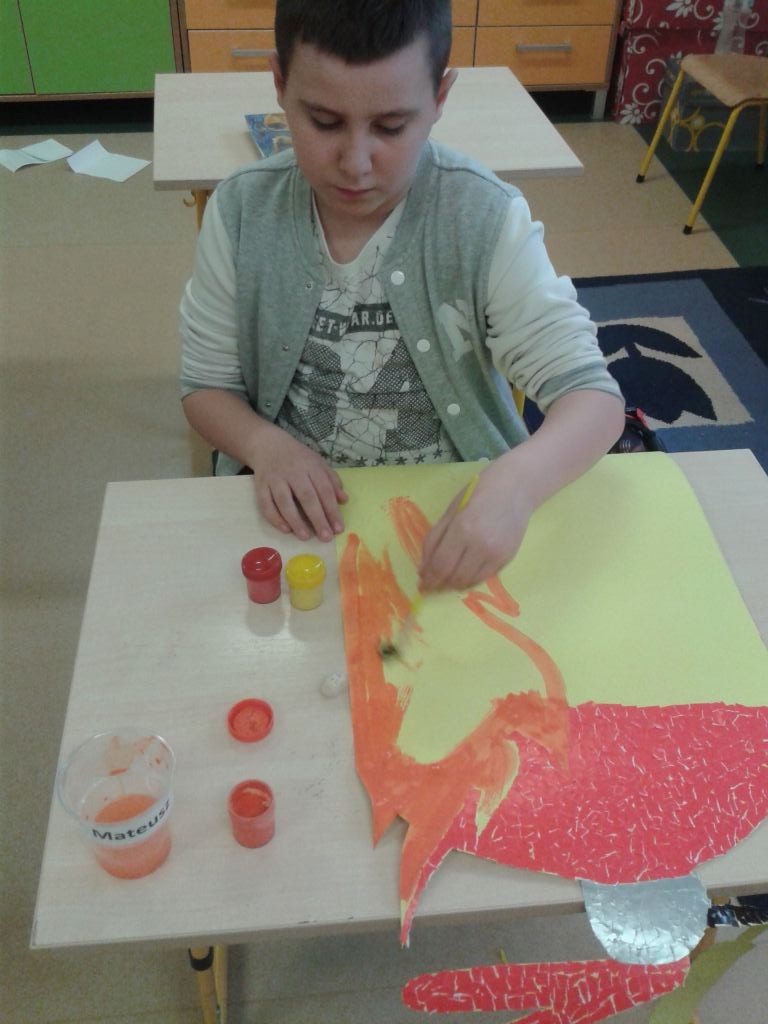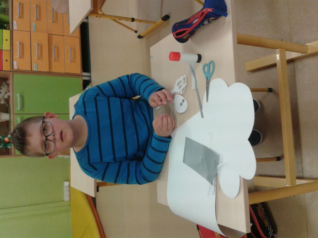 Uczniowie klasy IIa wraz z wychowawcami, korzystając ze swoich umiejętności komputerowych, tworzyli swój pierwszy w życiu kalendarz. Utrwalali przy tym nazwy miesięcy oraz przypominali nabyte umiejętności komputerowe. Po części zajęć komputerowych, wspólnymi siłami, rozpoczęli prace plastyczno-techniczne. Nie zabrakło ulubionych technik malarskich.