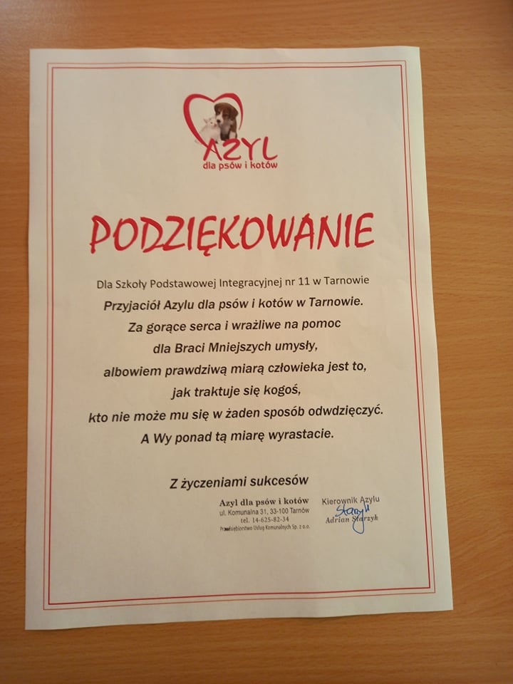 Z tej okazji jak co roku w naszej Szkole odbyła się akcja zbierania karmy i akcesoriów dla zwierząt ze schroniska w Tarnowie.